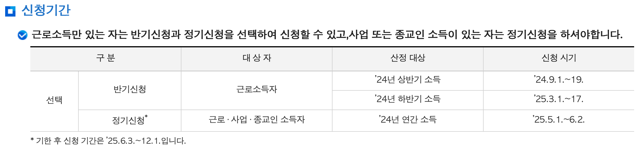 반기신청: 상반기(2024년 귀속분) → 2024년 9월 1일 ~ 9월 15일